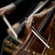 acoustic guitar close-up on a beautiful colored background, the concept of stringed instruments